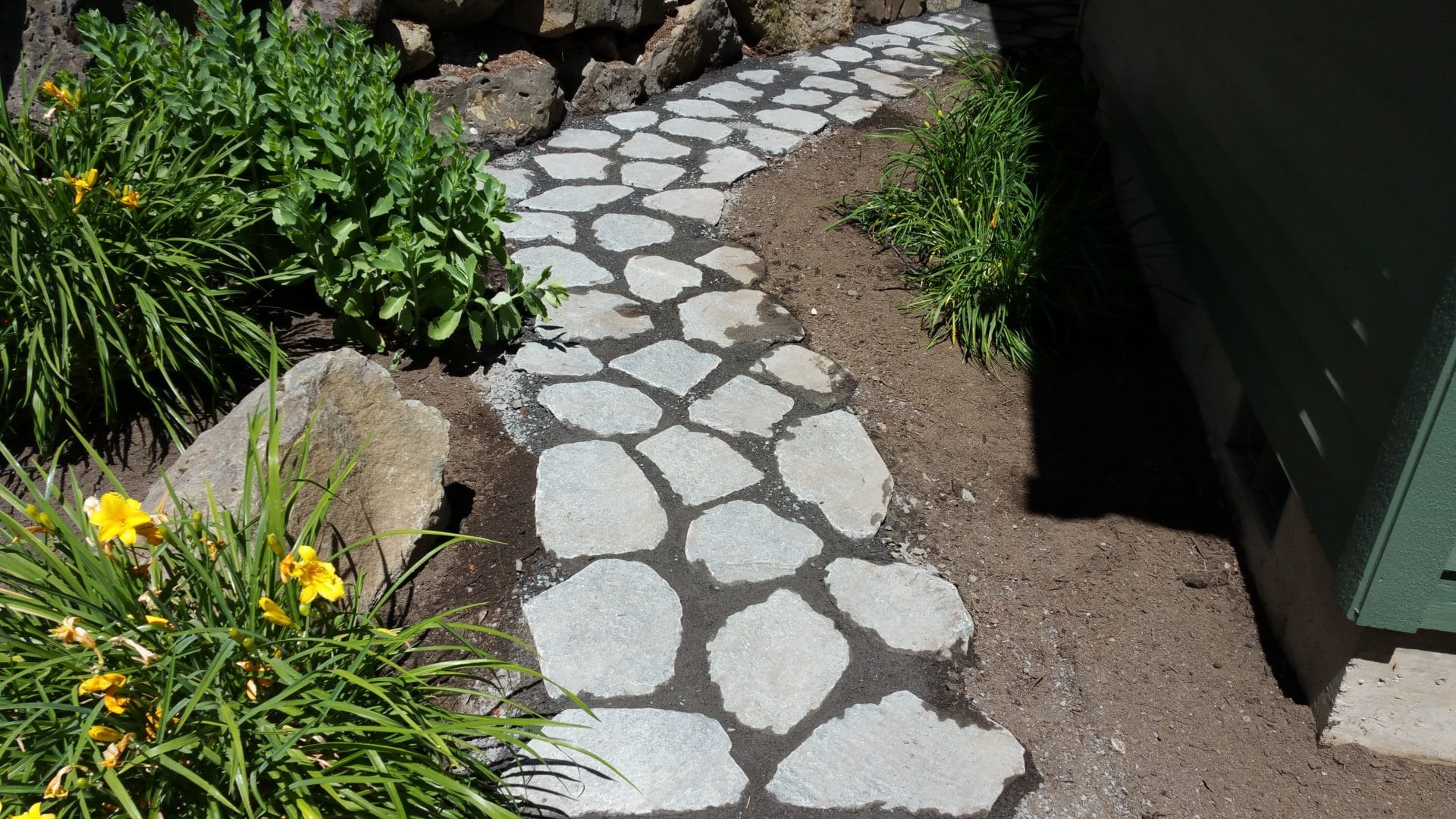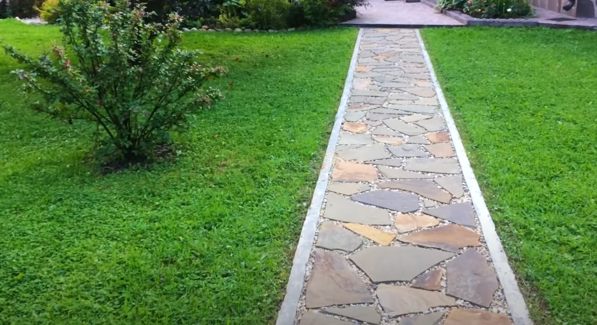 Как проходит по укладка дорожек из плитняка
